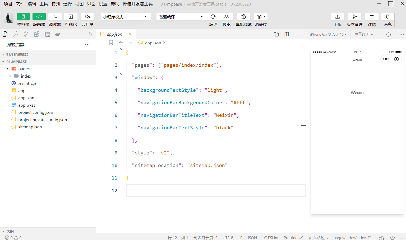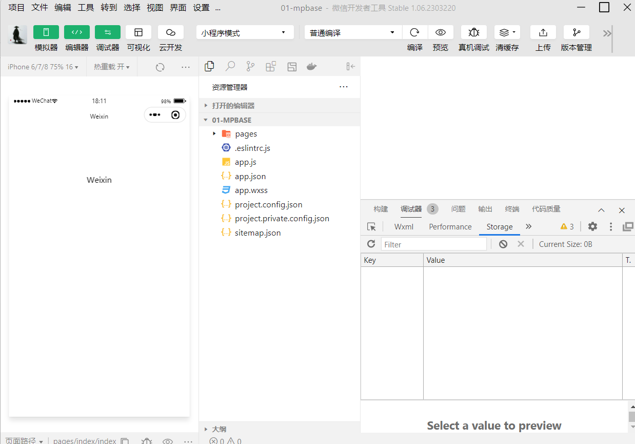 点击确定,如果能够看到小程序的开发主界面,说明小程序项目已经创建成功