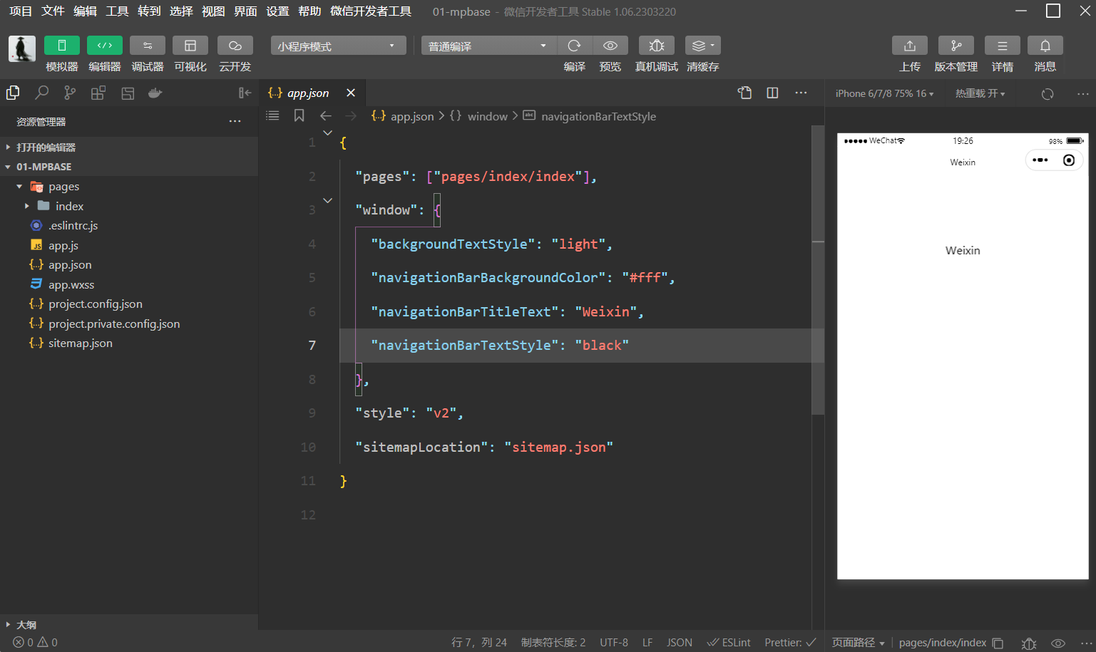 为了后续高效的对小程序项目进行开发,我们需要对微信开发者工具进行一些个性化的设置,例如:设置模拟器位置、编辑器主题、编辑区行高等,当然你可以继续使用官方默认的,也可以按照自己的喜好设置,设置步骤如下: