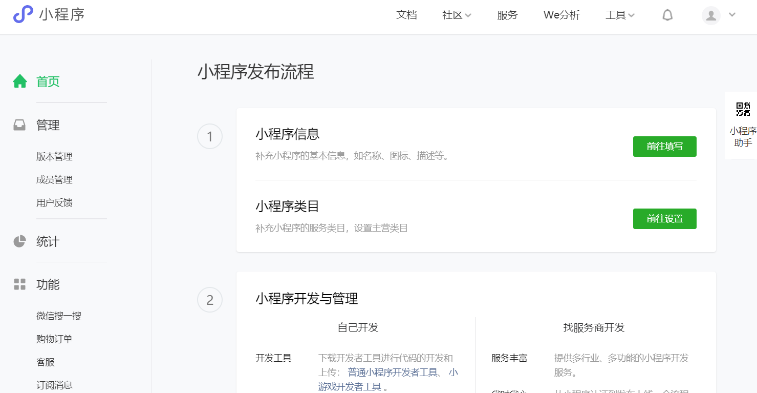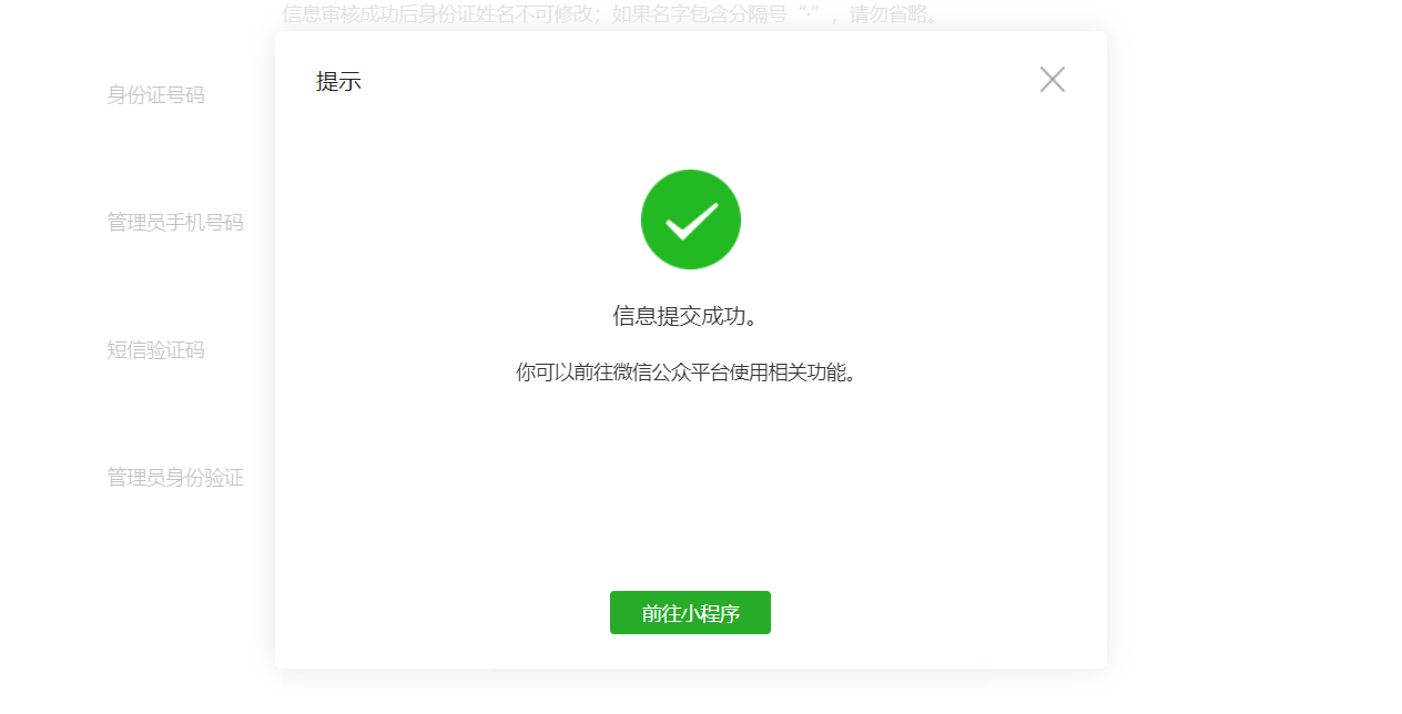 小程序注册完成,点击前往小程序,即可进入小程序后台