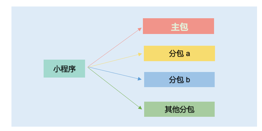 在小程序启动时,默认会下载主包并启动主包内页面,在用户访问分包内某个页面时,微信客户端才会把对应分包下载下来,下载完成后再进行展示。