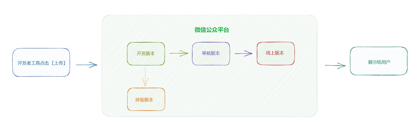 体验版本:小程序开发者可以将开发版本转换为体验版本,由测试人员以及产品经理进行测试与体验,确认没问题可提交审核